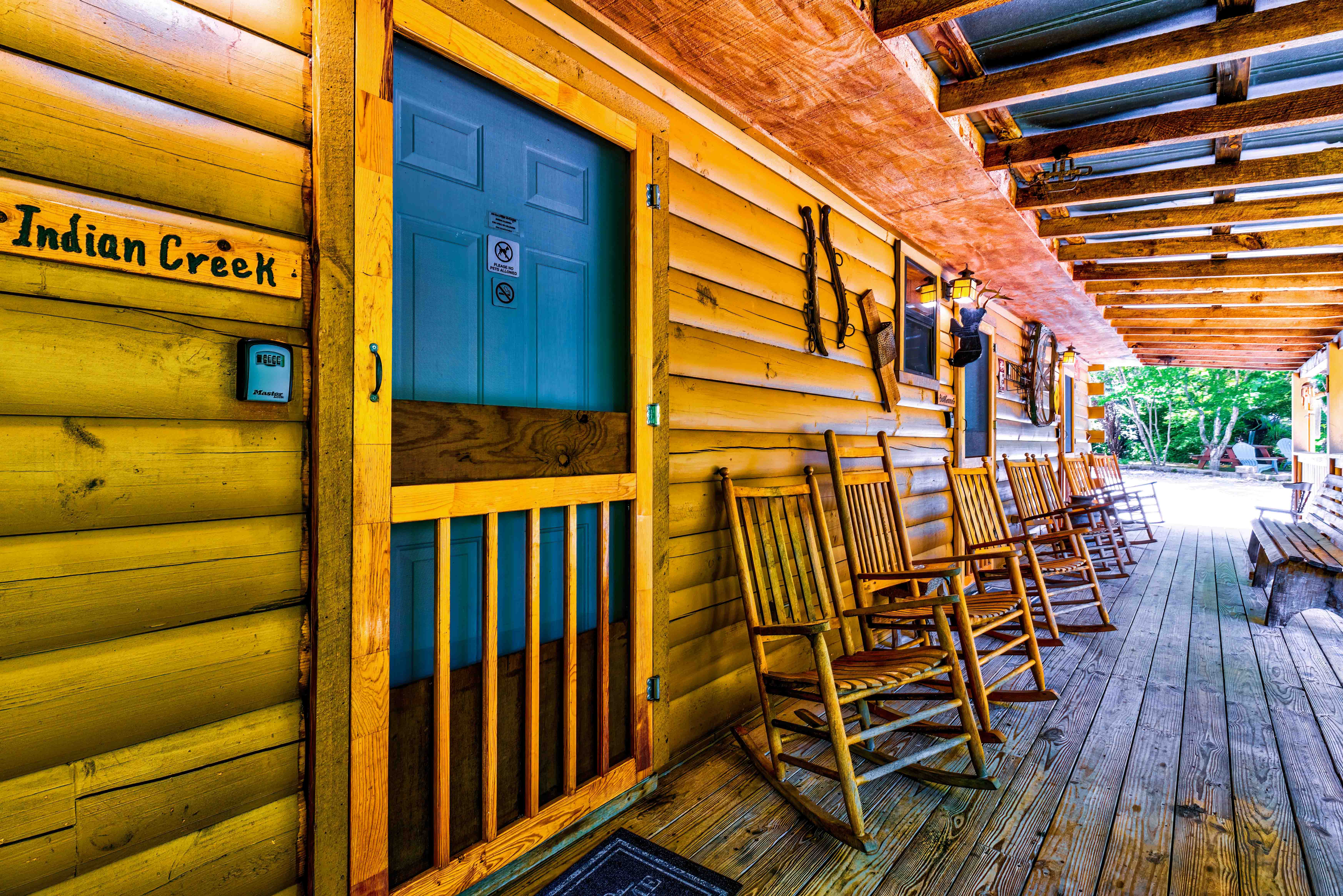 Shared Covered Deck with Rocking Chairs Has AC
